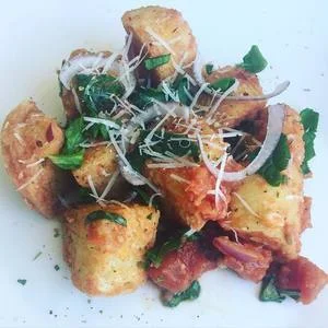 - 1 small red onion, sliced thinly